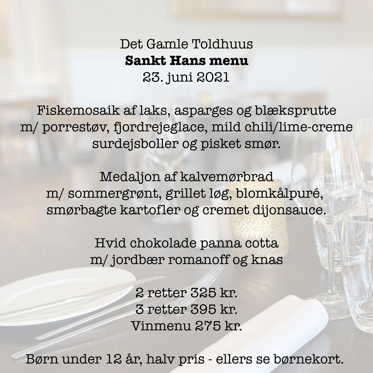 Restaurant Det Gamle Toldhuus i Præstø har i anledning af Sankt Hans kreeret en lækker 3 retters menu.