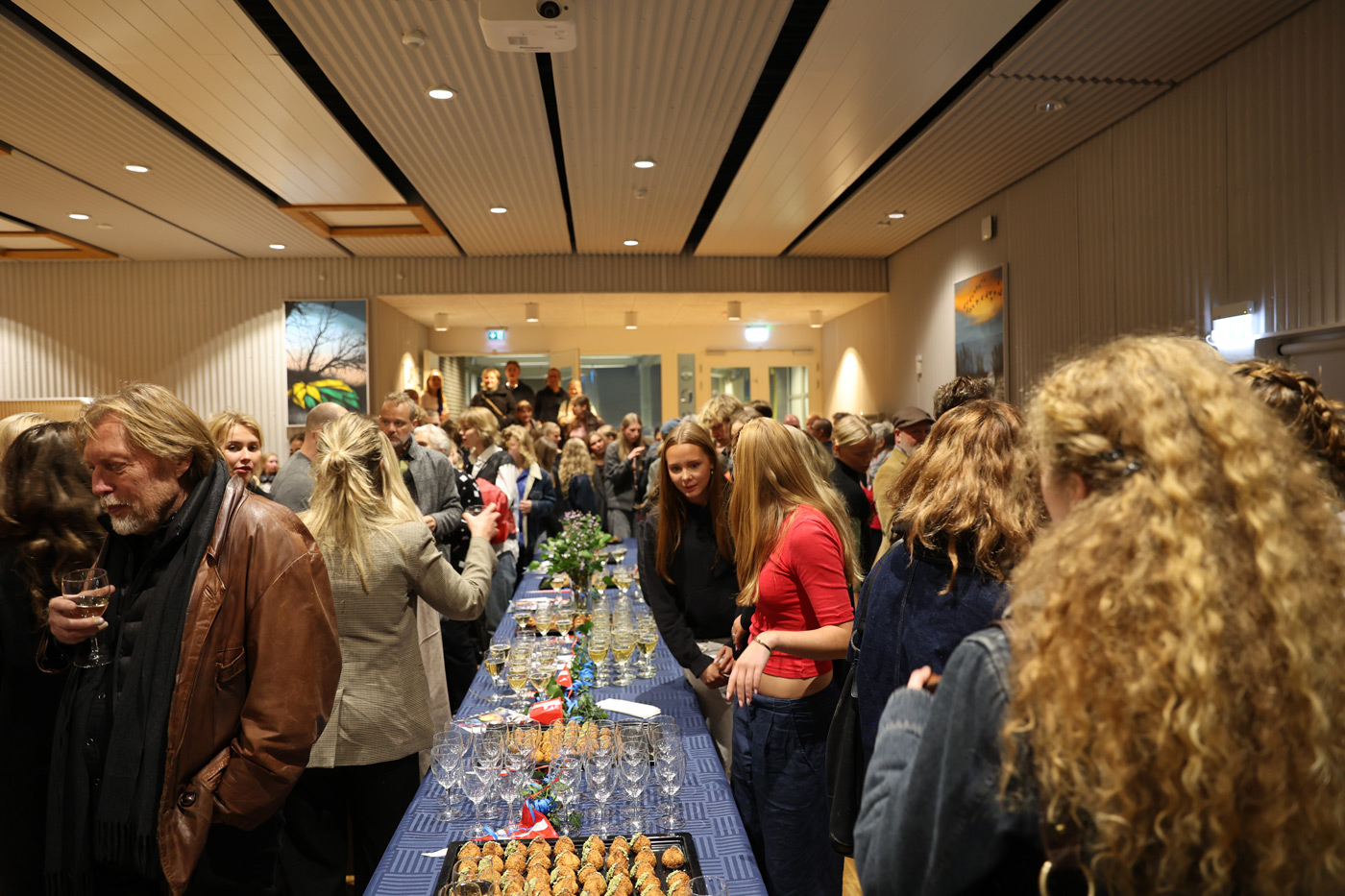 Der var langbord medd bobler og lækre små kager lige som man trådte ind i “salen”, og en summende hyggelig stemning.