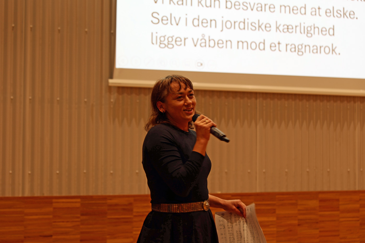 Imellem talerne var der sange. Maria fra Pavillon K sang for og Frans Jacoby spillede klaver. -Det er teaterfolk der har valgt sange, de er svære, ikke mange kender dem.