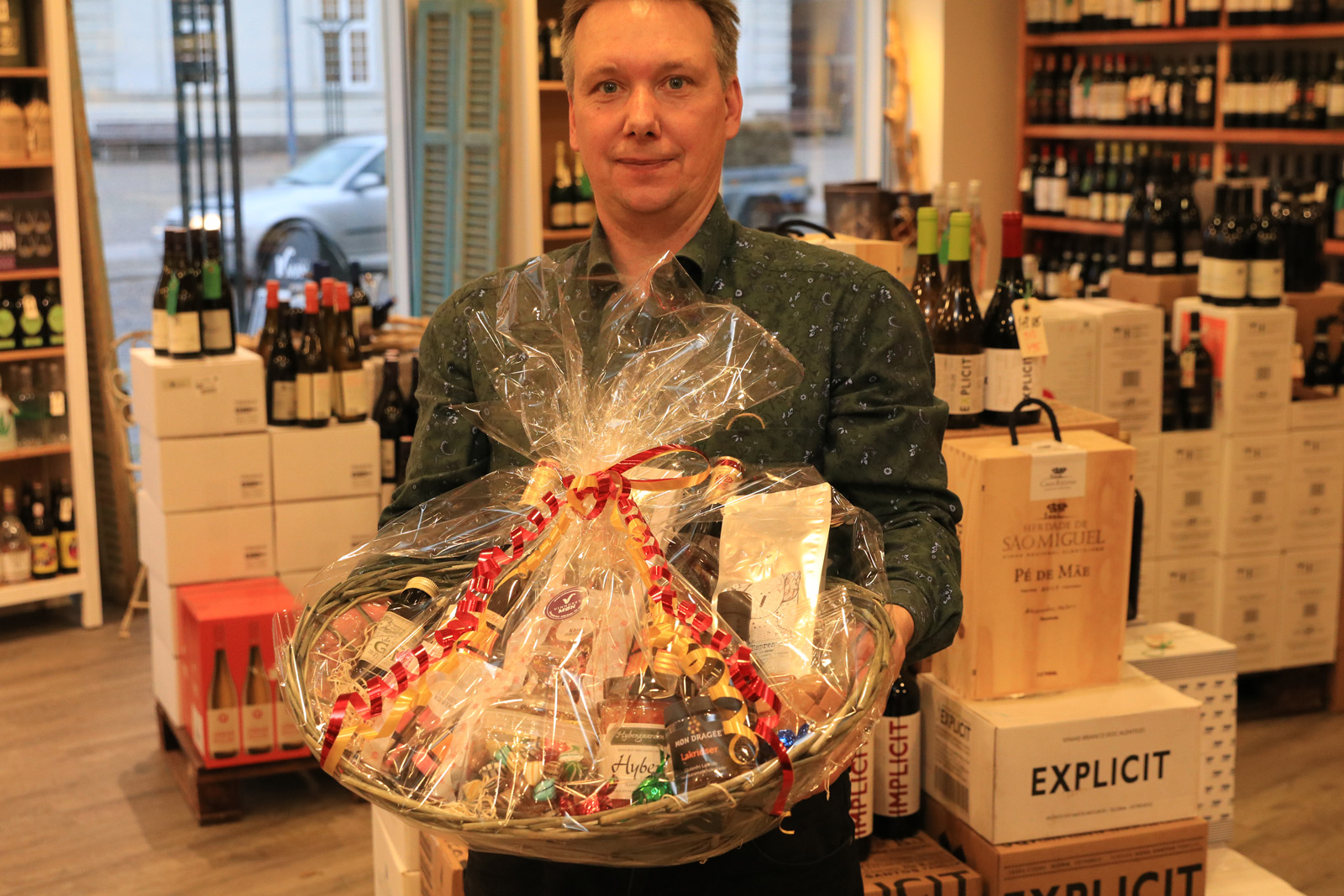 Vinhuset Møn med de gode vine og flotte kurve