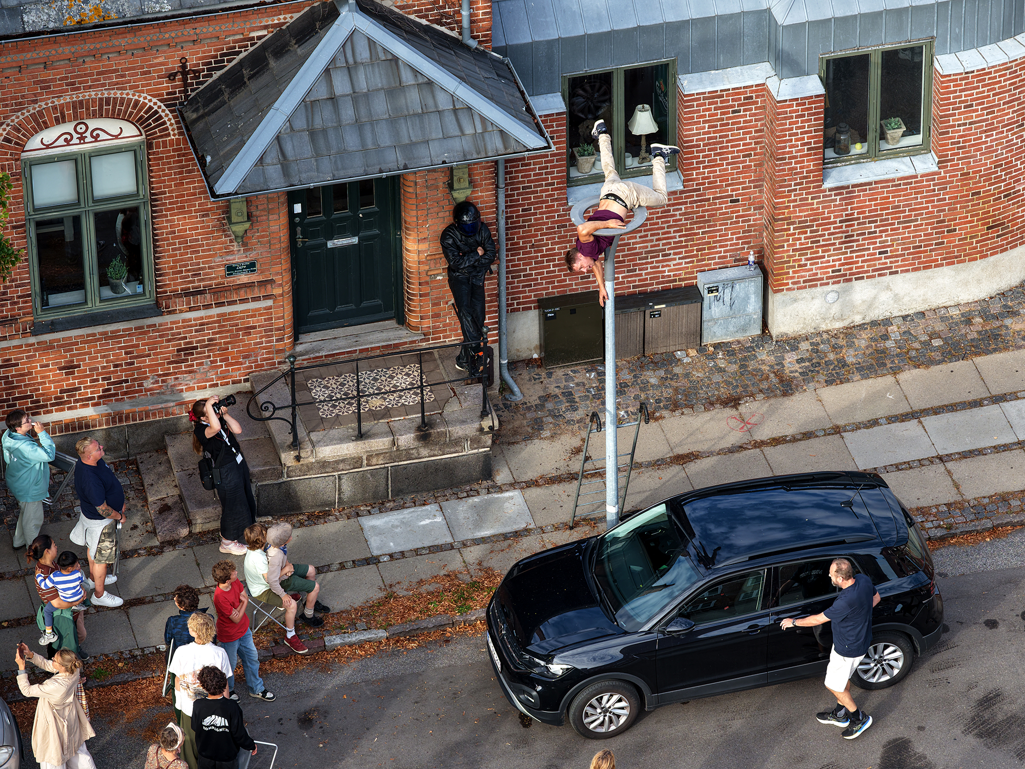 Publikum blev ført ind i en verden, hvor gader, pladser og baggårde ikke blot er hverdagens rum – men levende scener fyldt med akrobatik, musik, humor og magiske øjeblikke.