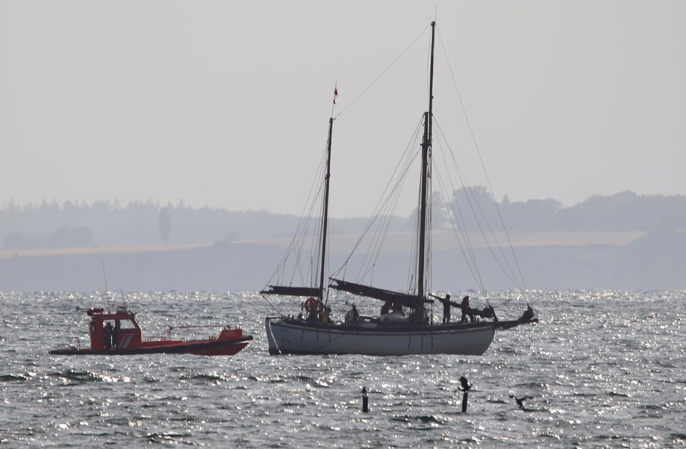 Skibet Aglaia fra Østrig lå ud for Klintholm Havn omkring klokken 12.30.