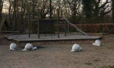 De seks snegle som siden 2017 har stået i Algade i Vordingborg foran byggepladsen til det