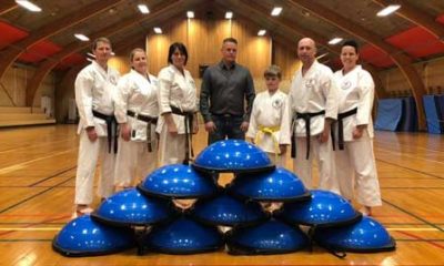 Stor glæde i Brøderup Karateklub. Glæden var stor da M.J. Eriksson A/S sponsorerede nogle specielle balancebolde.