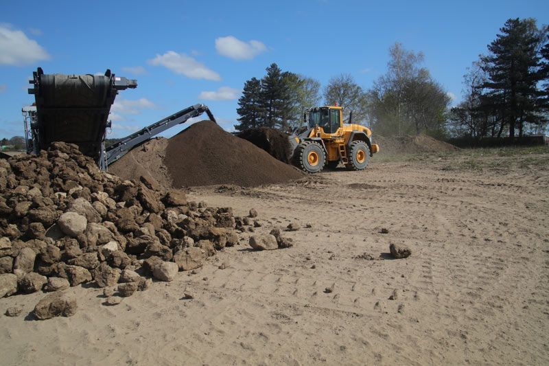 Ialt er der 2.500 tons jord. Det skal sorteres og så får man det man kalder “harpet muld”.