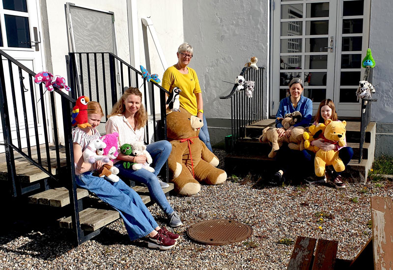 Du er velkommen til at gå helt op til hovedbygningen fra Færgegårdsvej, så du kan se og tælle alle bamserne gennem vinduerne og udenfor. Vi sætter lys på og inde i bygningen om aftenen.