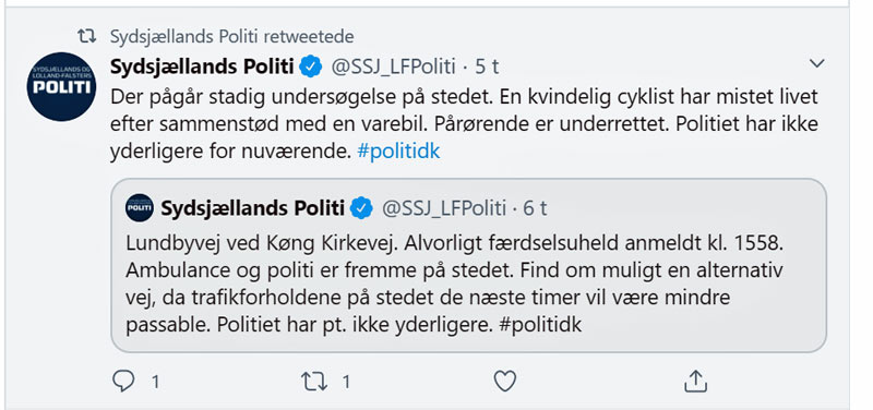Cyklist dræbt i trafikulykke