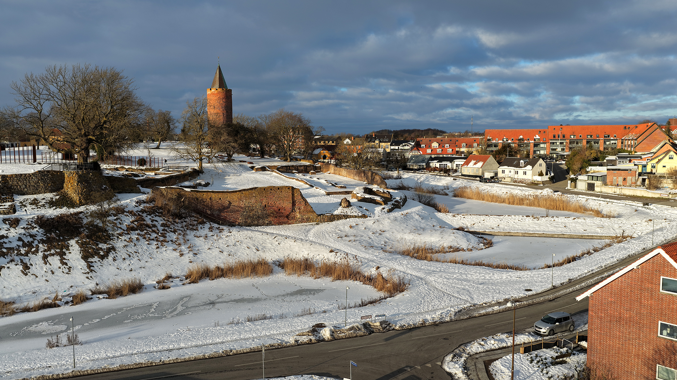 For bare en uge siden viste Vordingborg sig fra en rå og imponerende vinterside. Det var isnende koldt, og sneen lå ikke bare som et let drys – den havde samlet sig i høje driver og markante is- og sneformationer mange steder i byen. Det var endnu ikke begyndt at tø. Alt stod skarpt, frosset og næsten urørligt.