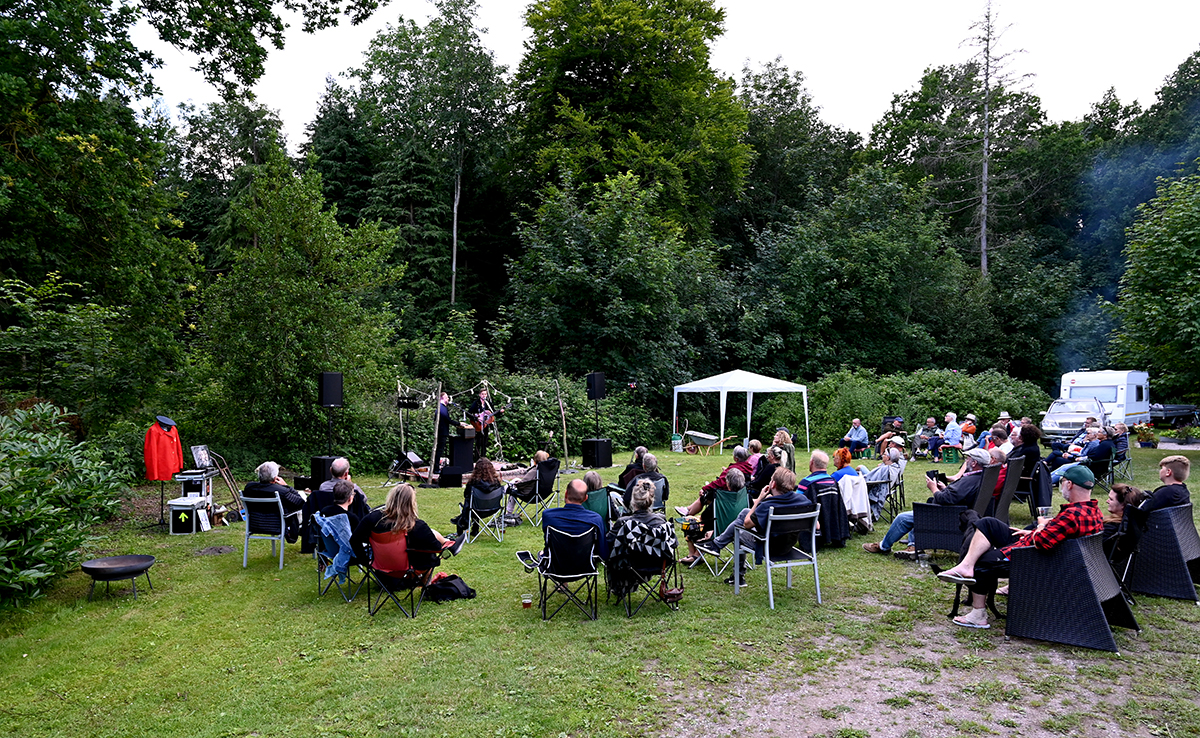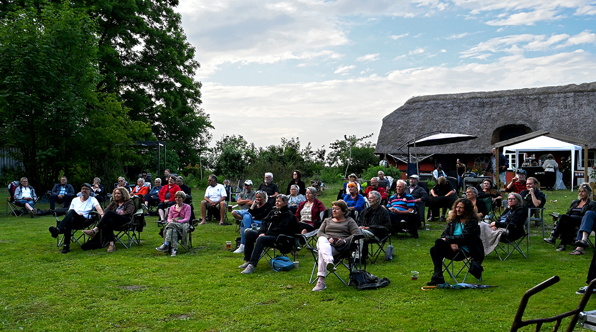 Skøn aften i Vordingborg på Statenevej 69, som sluttede lidt brat med en dommedagsagtig byge onsdag aften. Kulissen med de store høje trækroner og den vidunderlige have var et perfekt sted for en sommerkoncert. Det var Anders Møller som kontaktede MC Hansen og hurtigt fandt de ud af at det var en super god ide. MC Hansen og Jacob Chano havde en helt vidunderlig klang og lyden af sommer og dejlig stemning var i særdeleshed tilstede. Det endte dog i et brag af en regnbyge onsdag aften ude ved Rosenfeldts jorder.