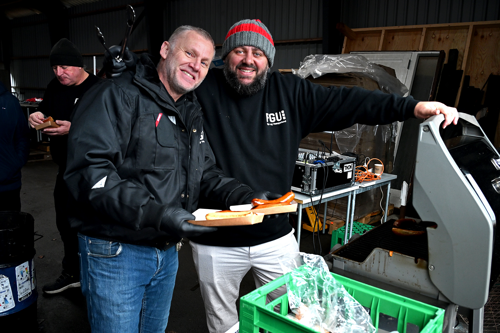 Værkstedslærerne for Motor og Mekanik, Ahmad Michlawi (th) og Kim Bruno Rasmussen stod for grillpølserne.
