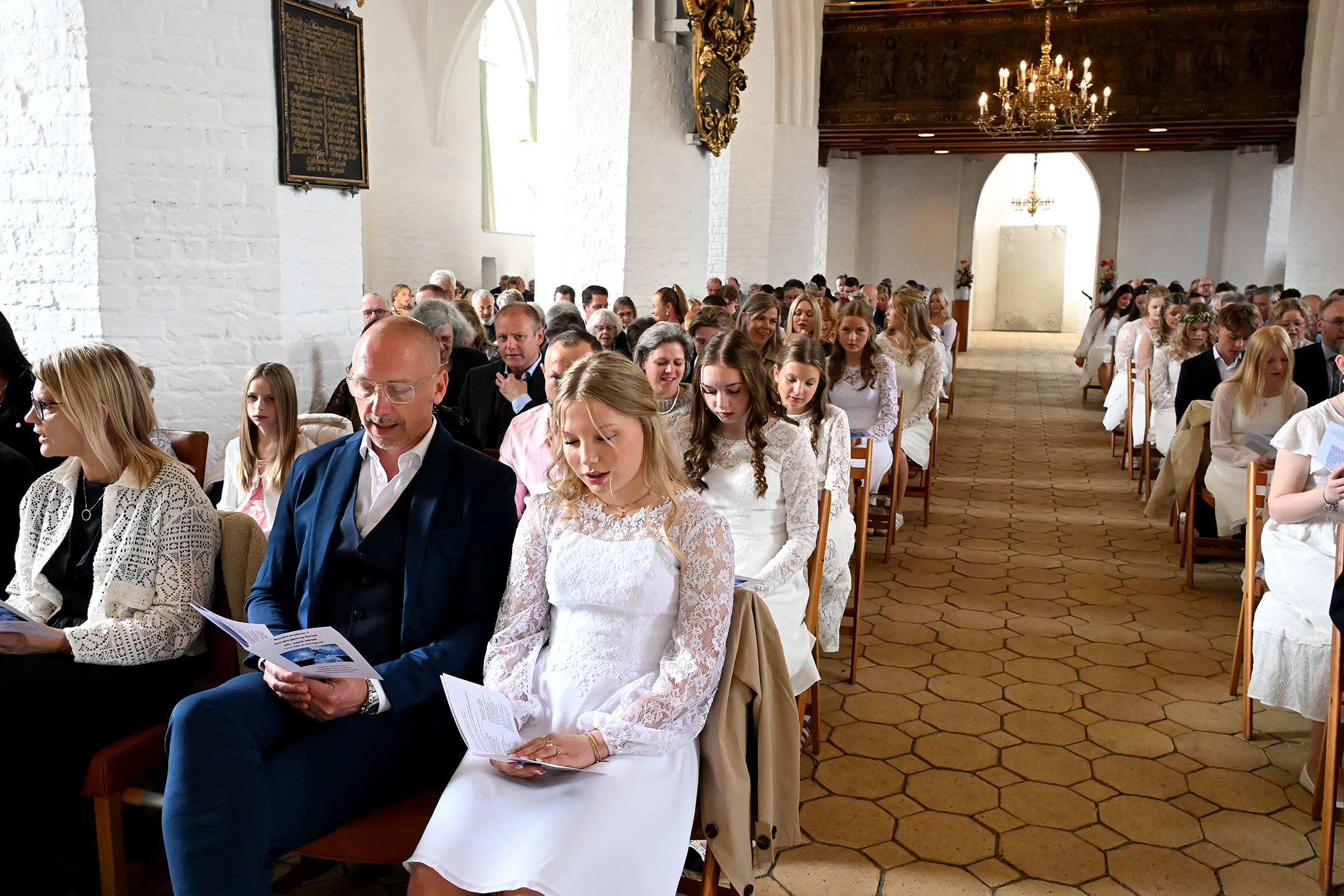 Kirken var igen fyldt med forventning, glæde og stolthed. Nye familier og gæster satte deres præg på dagen, men følelsen var den samme: en vigtig milepæl i de unges liv. Konfirmanderne trådte frem med både spænding og værdighed, og rammen var præget af fællesskab og betydning.