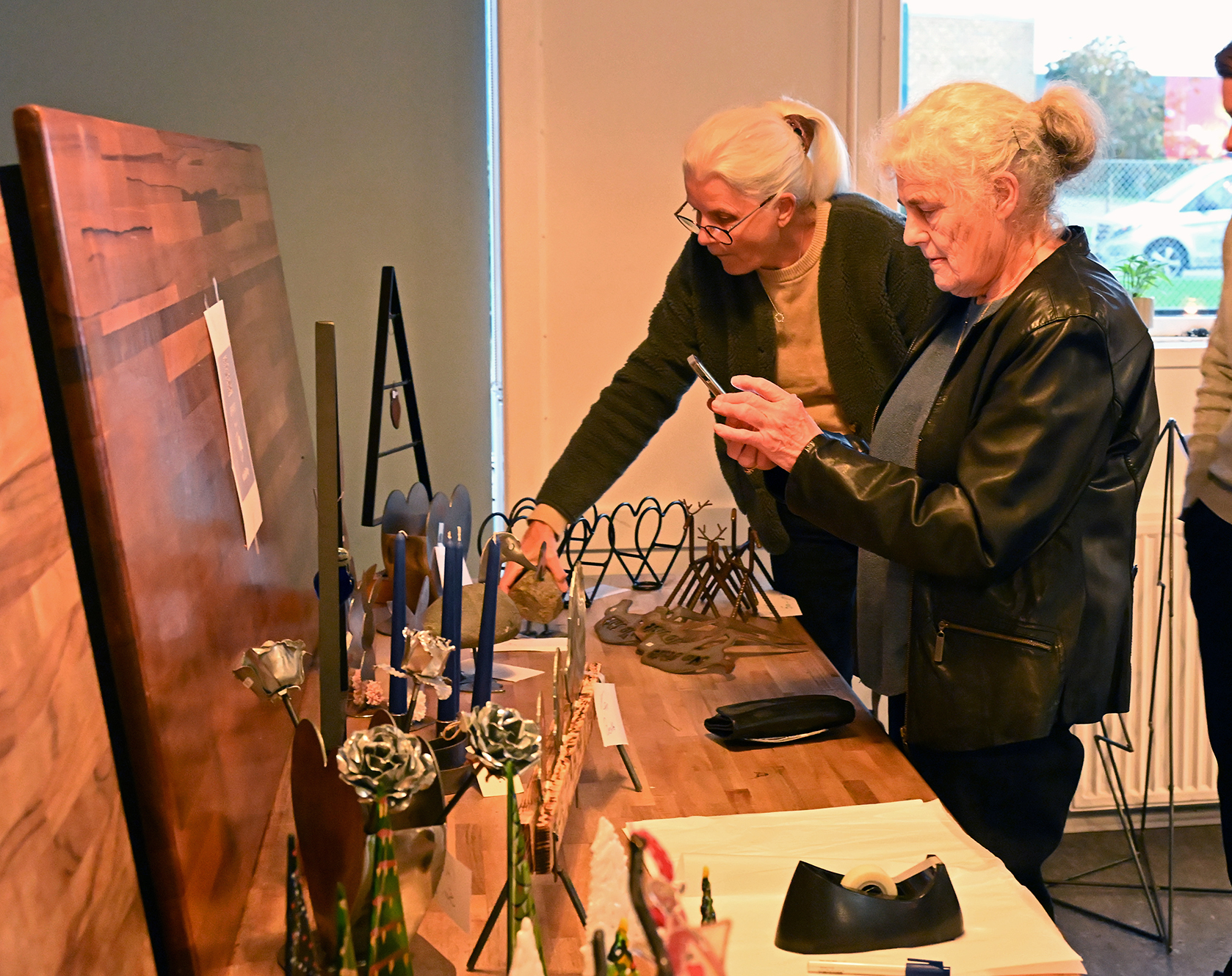 Der var også spændende metalkunst, hvor eleverne havde forvandlet råt jern til kreative figurer og funktionelle ting, og mange gæster lod sig begejstre over den kvalitet og fantasi, som prægede det hele.