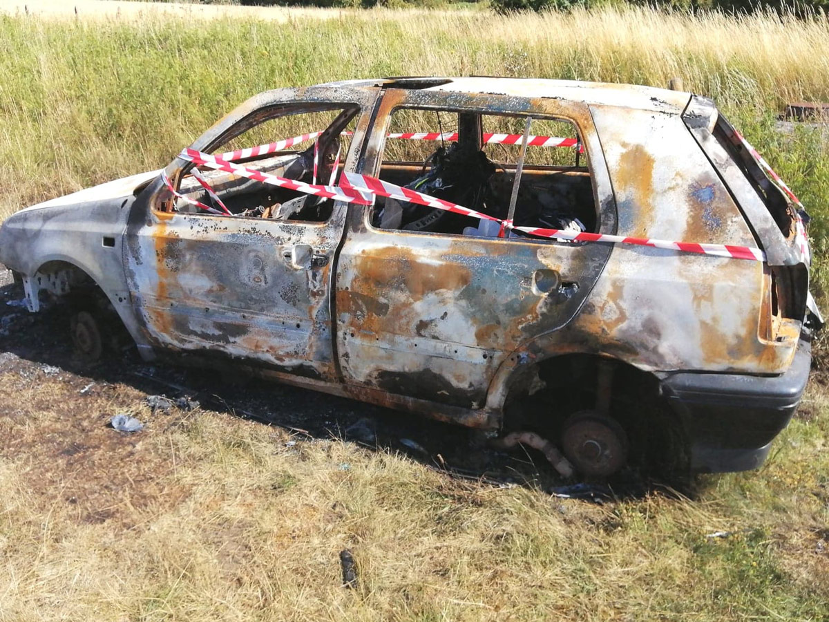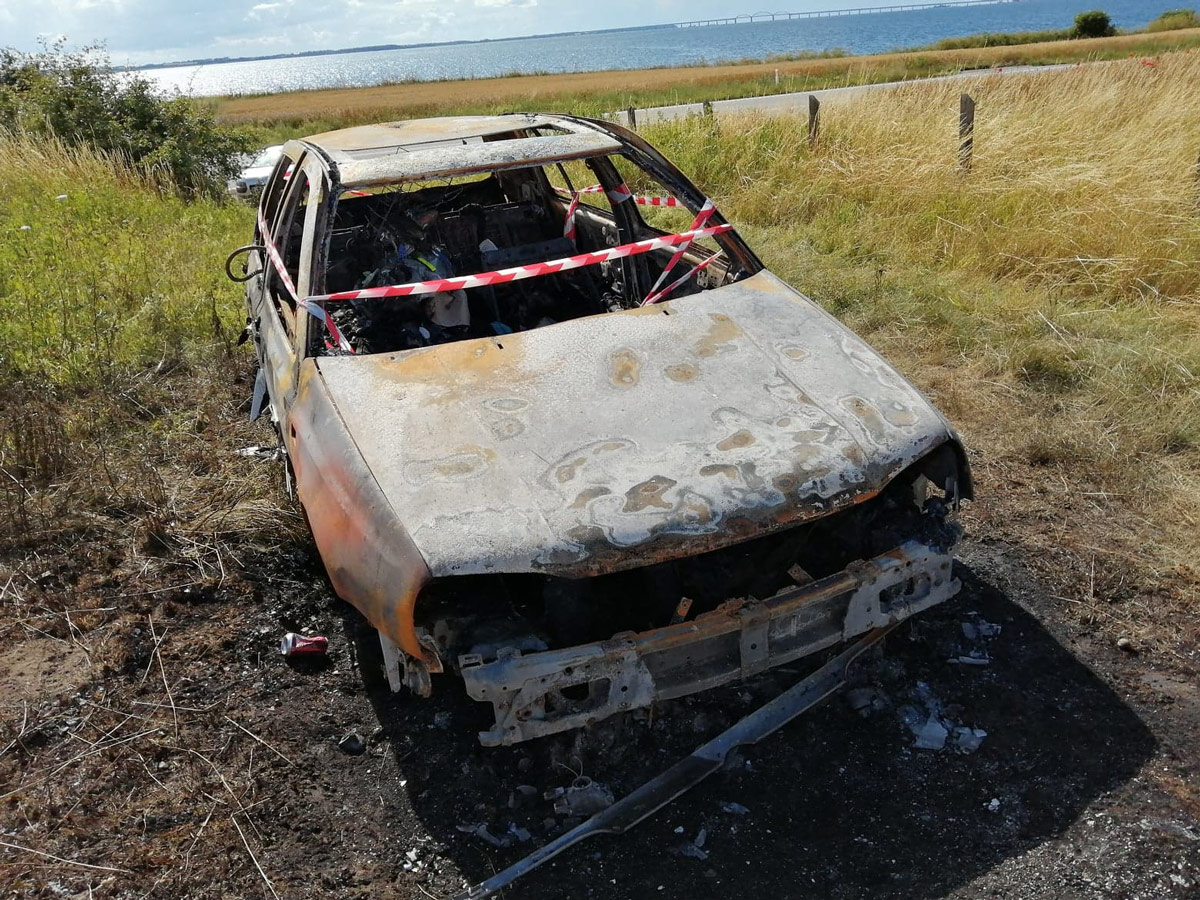 I går eftermiddag så samme bil sådan ud efter den var blevet afbrændt eller måske selvantændt?? Det skal politiets teknikkere finde ud af.