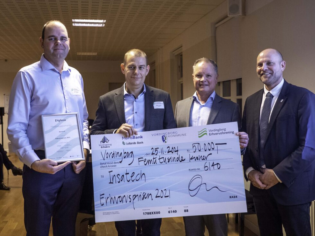 Instrumentvirksomheden Insatech i Bårse modtog i går aftes Erhvervsprisen 2021 ved en ceremoni på Idrætshøjskolen Bosei i Præstø.