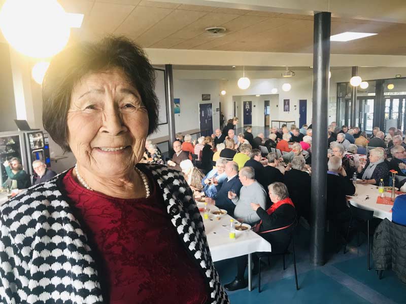 Kitty har boet i Danmark siden 2006, hvor hun flyttede hertil med sin danske mand. De bor nu i Damsholte. Kitty og hendes mand er rigtig glade for at komme til fællesspisning i Mønshallerne. Det er anden gang, at de kommer til arrangementet: ‘Vi elsker at komme her og møde alle de dejlige mennesker og nyde den gode mad sammen’, siger hun grinende og fortsætter: ‘og det ville være dejligt med noget musik også, så vi kan danse lidt, siger den 79-årige Kitty.