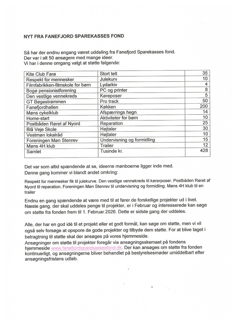 Igen har Fanefjord Sparekasse fond delt et større beløb ud til Møn/Bogø.
