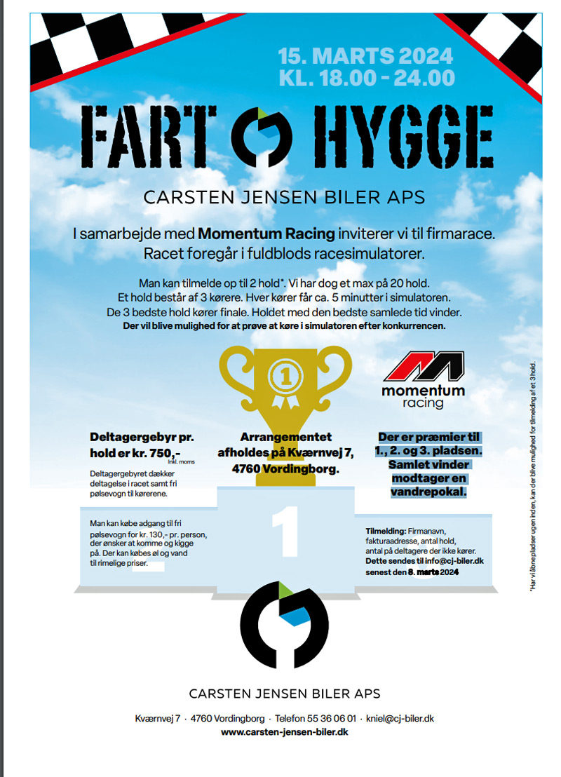 I samarbejde med Momentum Racing inviterer Carsten Jensen Biler til firmarace.