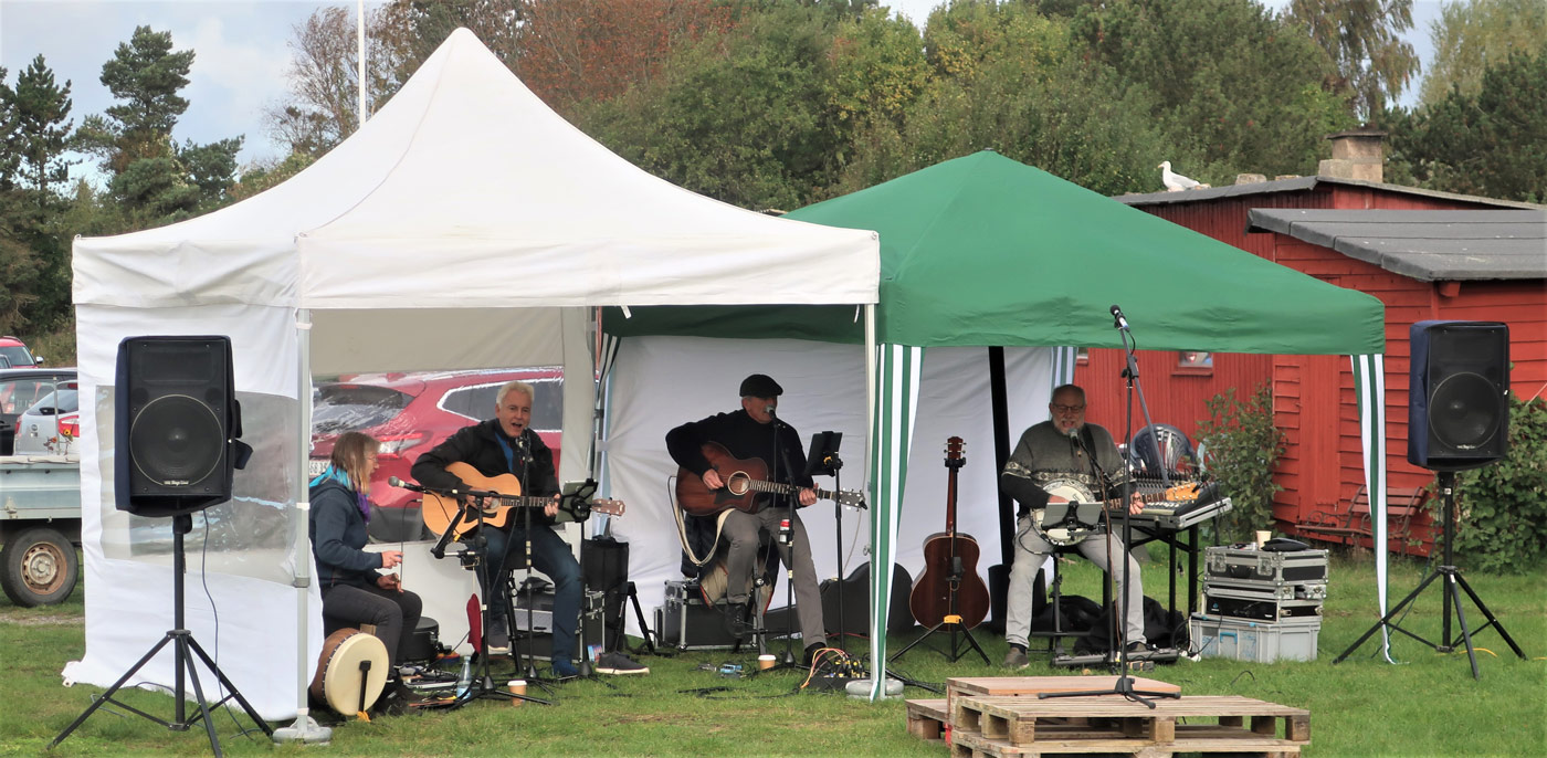 Omkring 100 mennesker var mødt op på denne friske søndag oktoberdag, hvor der var indkaldt til folkemøde om Hårbølle Havns fremtid.