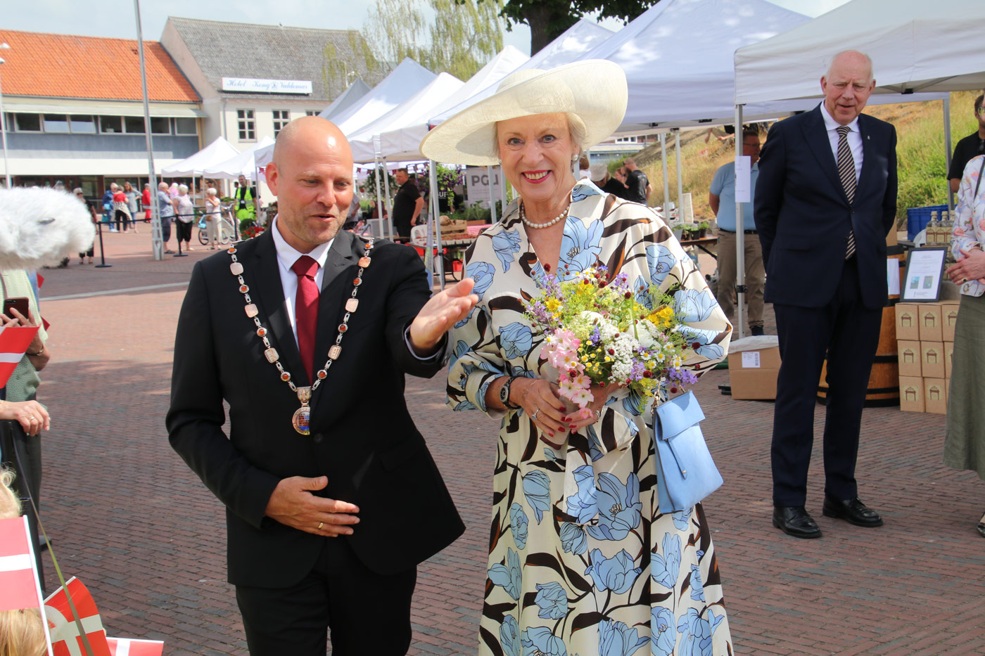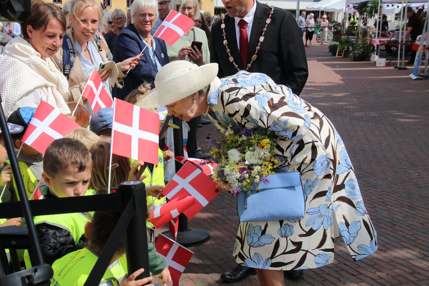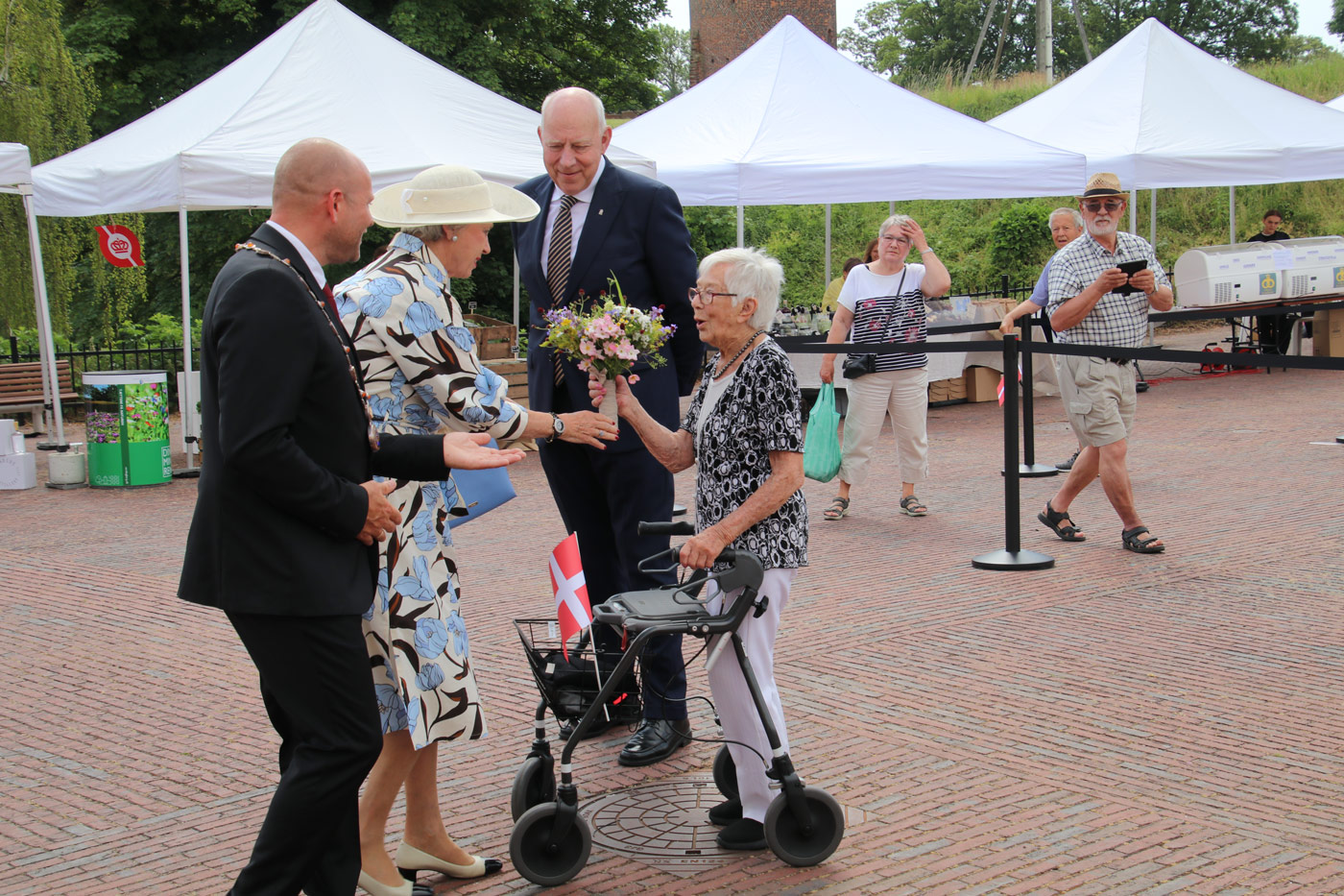 Den 101-årige “Blomsterdame” Karen Agnete Viborg havde den store ære at overrække en buket blomster til prinsessen.