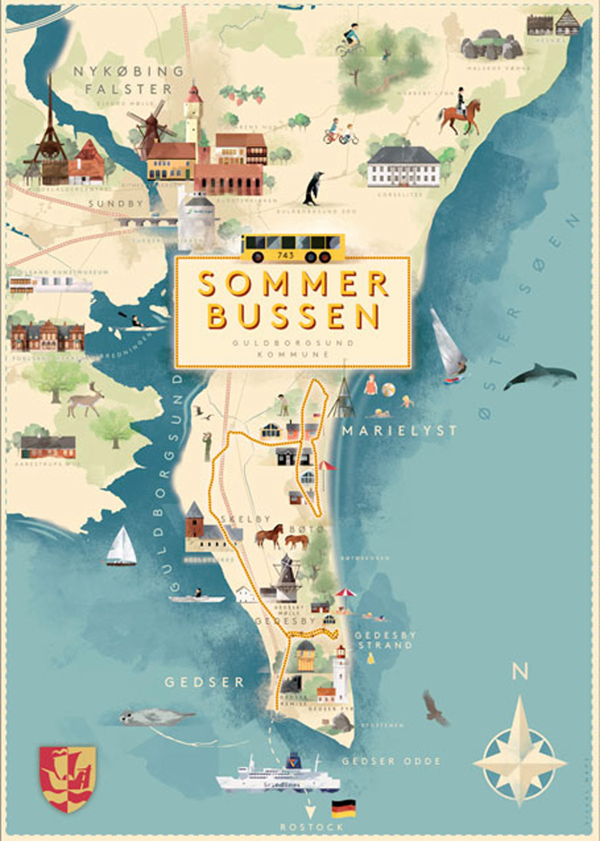 Hele sommerferien uge 27-32, kan du hoppe på sommerbussen, rute 743, som kører mellem Gedser og Marielyst med stop i bl.a. Gedesby, Skelby og Marrebæk.