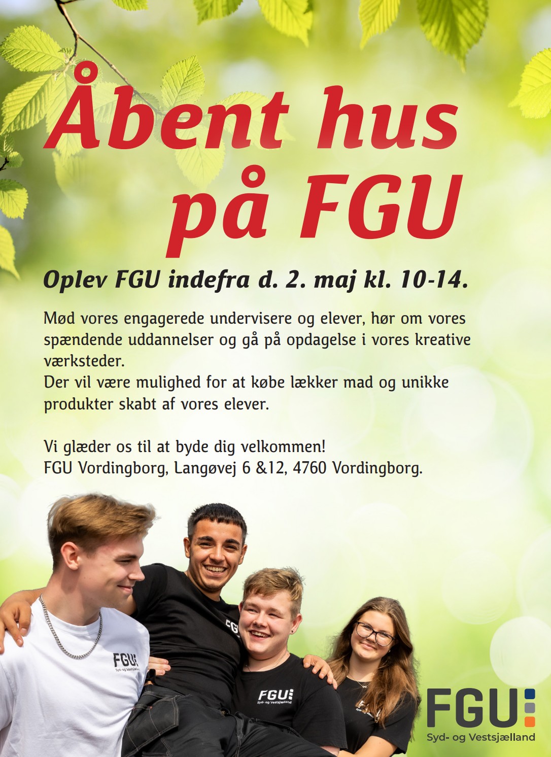 Lørdag den 2. maj inviterer FGU Vordingborg indenfor til åbent hus fra kl. 10.00 til 14.00 på adresserne Langøvej 6 og 12 i Vordingborg.