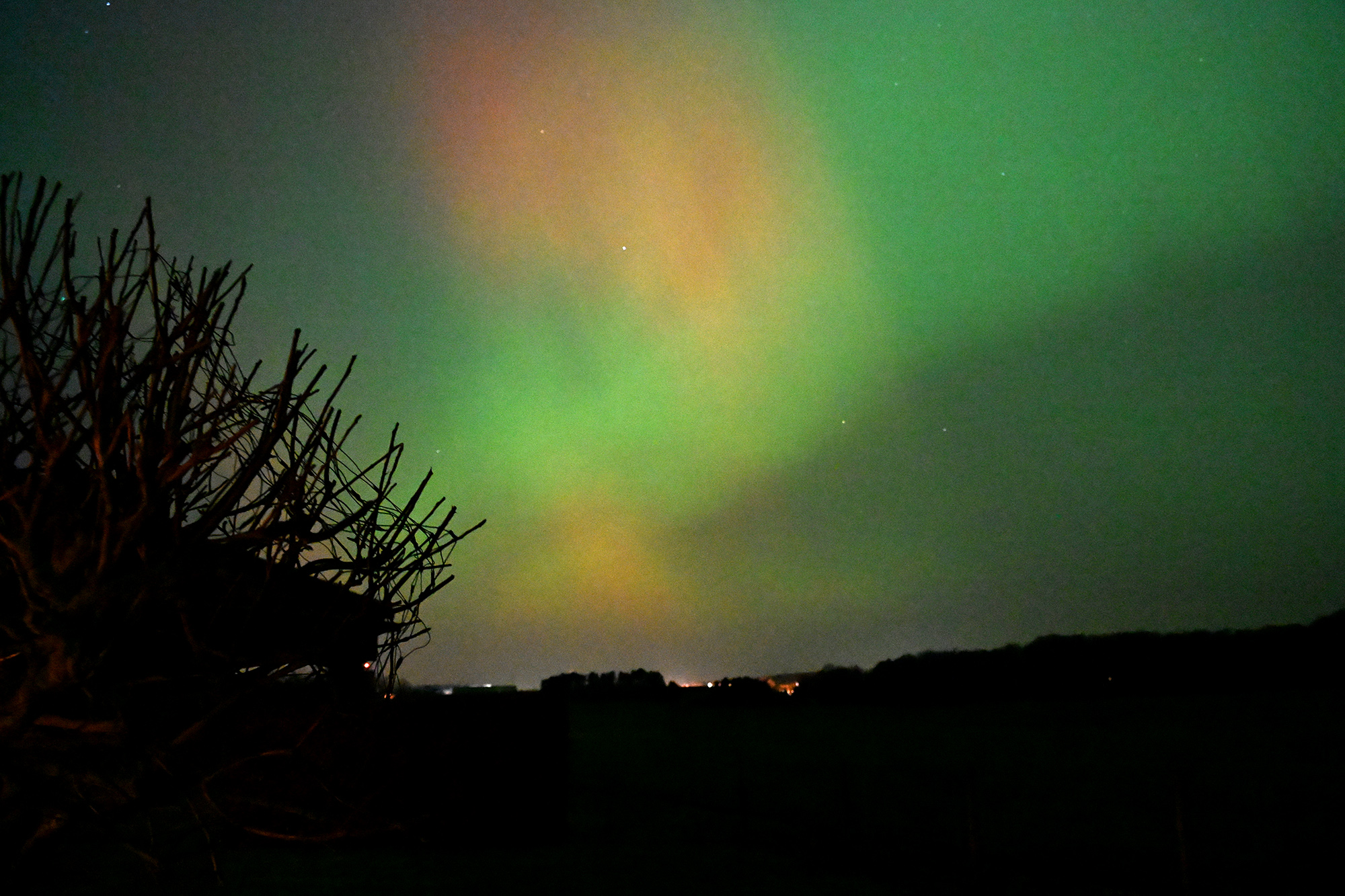 Sydsjælland blev her til aften forkælet med et sjældent og imponerende syn, da nordlyset pludselig dansede hen over himlen. Grønne og svage lilla nuancer kunne ses brede sig i mørket og skabe en næsten magisk stemning.