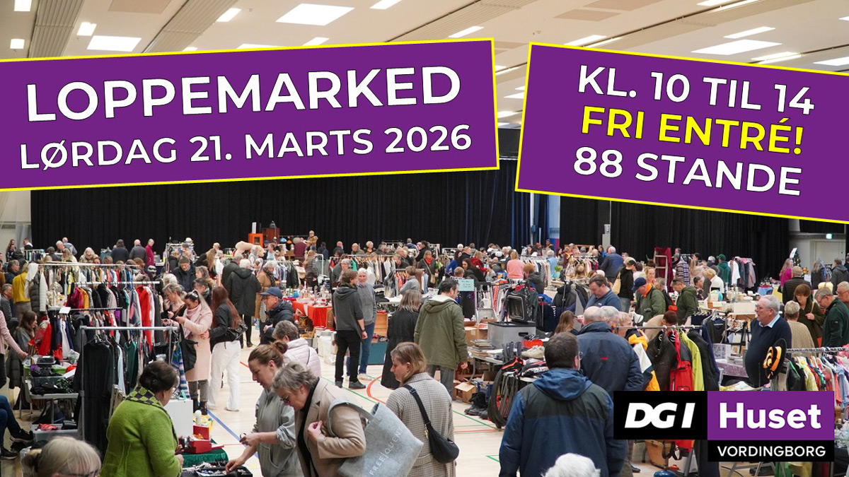 Annonce: Lørdag den 21. marts afholder DGI Huset Vordingborg endnu engang loppemarked. Der er FRI ENTRÉ for besøgende kl. 10 til 14 til at gøre et kup blandt de op til 88 stande.