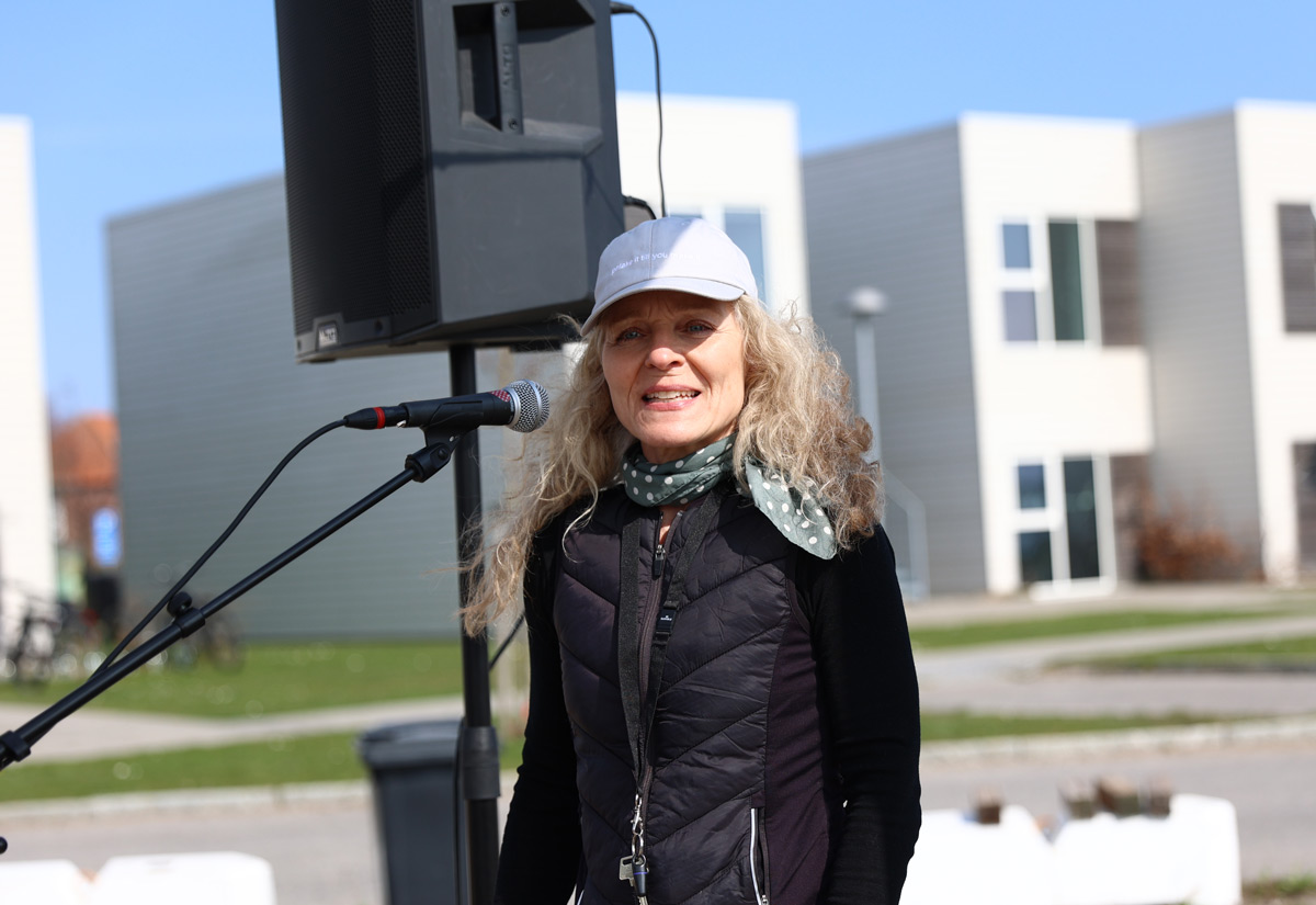 Byplanlægger Charlotte Henckel bød de fremmødte velkommen og fortalte kort om Kajstuen og hvad der ligger bag. At det er et EU-projekt som hedder “Connecting River” omkring mødesteder og fælleskaber, og dette er det trejde eksperiment. Det første var et seks ugers projekt, en sauna med tilhørerende udeområde med flytbare pantekasser og bænke. Saunaen blev placeret mellem Vordingborg Bibliotek og havnekajen og åbnede 20. dec. 2024.
