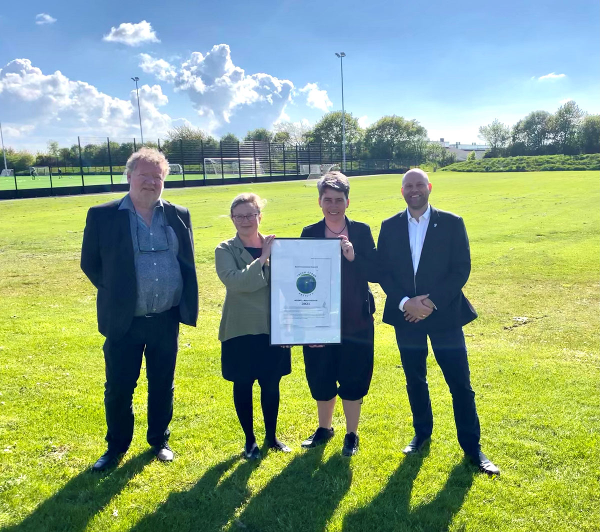 Moena Mønshallerne fik onsdag den 19. maj 2021 overrakt et indrammet Green Sport Facility-diplom som bevis på, at de er et kultur- og sportshus, der er certificeret som grønt idrætsanlæg.