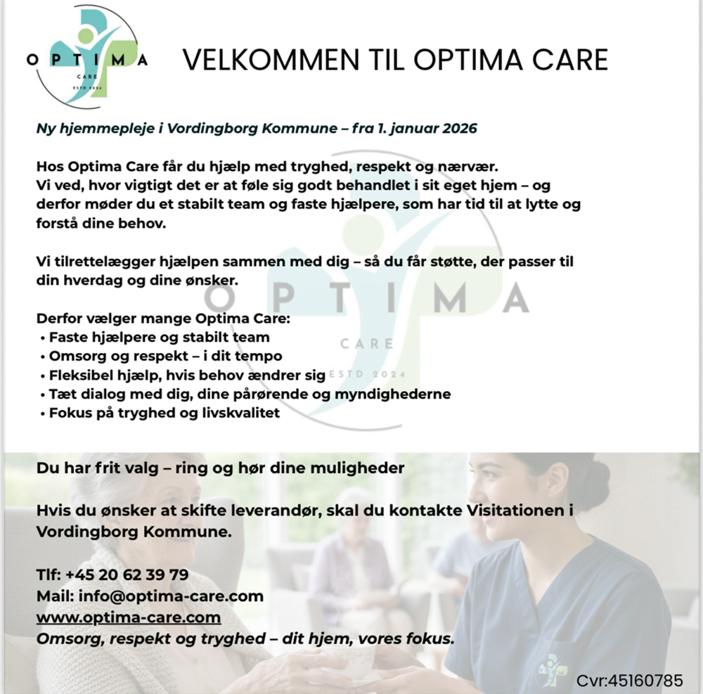 Annonce: Ny hjemmepleje i Vordingborg Kommune – fra 1. januar 2026.
