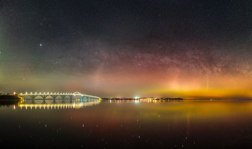 En smuk stille nat ved Dronning Alexandrines bro over mod Kalvehave. En perfekt aften hvor
