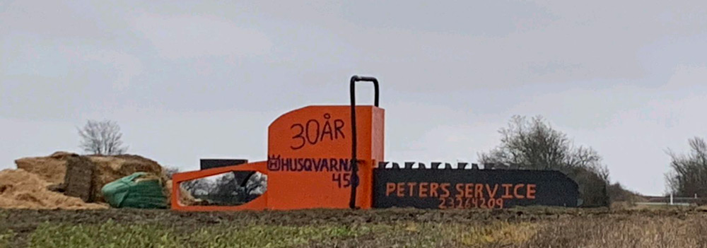 Vil du se motorsaven på nært hold, findes den på adressen Vestervej 3, Kalvehave.