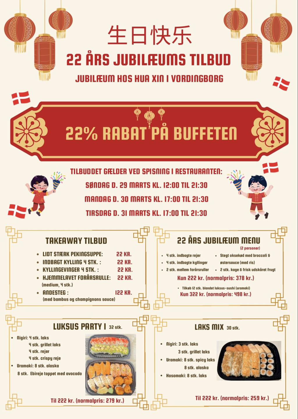 Som tak for jeres støtte giver vi 22% rabat på buffeten i restauranten den 29. Marts, 30. Marts og 31. Marts 2026!