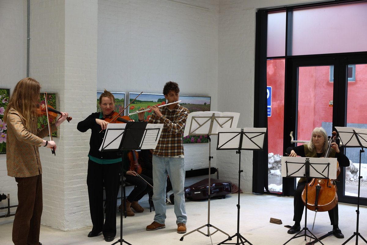 Inden talerne var der  underholding fra Musikskolens musikere som skabte en dejlig stemning i huset med levende kammermusik for cello og violin, medens gæsterne kunne nyde et glas bobler. Efter talerne gav Præstøkoret nogle herlige numre, og her brillerede rummet med en fantastisk akustik.