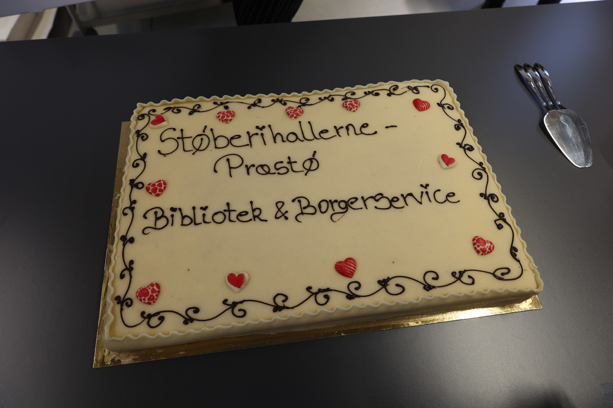 Kl 12.00 var der lagkage til alle, og borgmester Michael Seiding Larsen og bibliotekschef Henning Schmidt skar for!