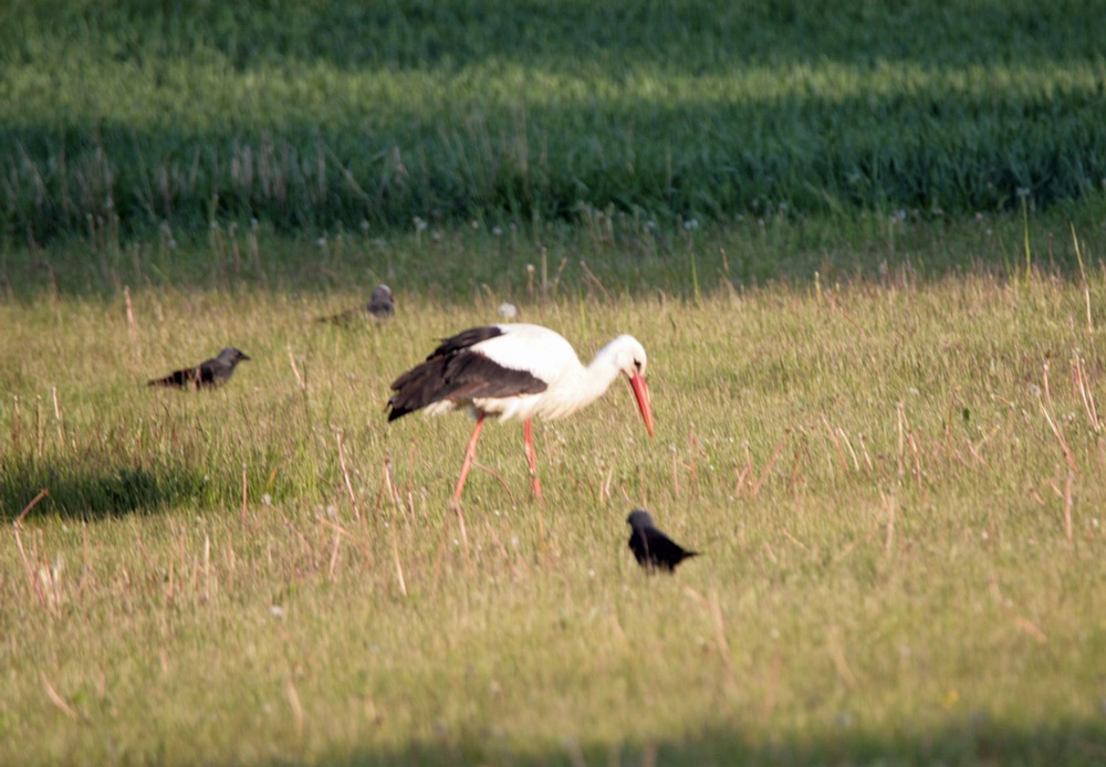 Storken spankulerede rundt ved Ålebæk hvor der også er en rede.