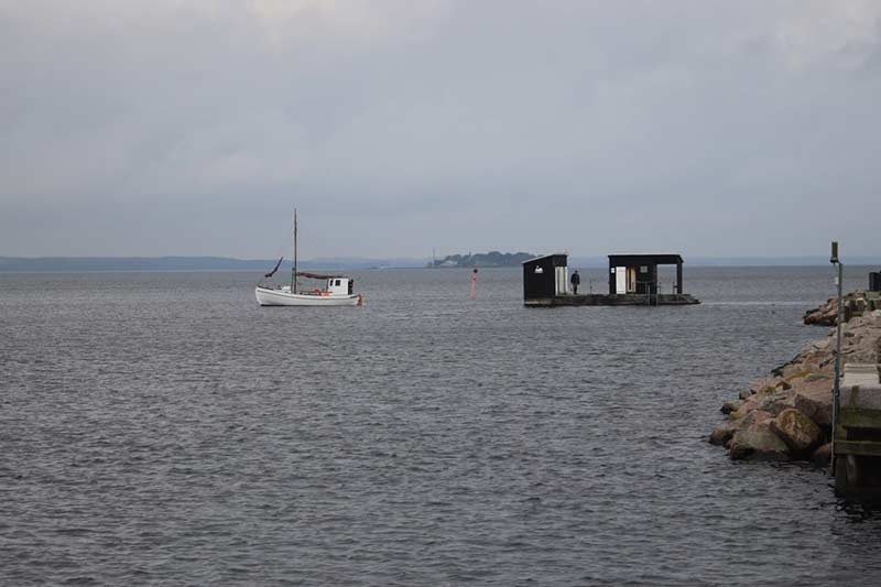 Badeanstalten Svanen blev fredag trukket ind i lystbådehavnen i Stege til glæde for vinterbaderne.