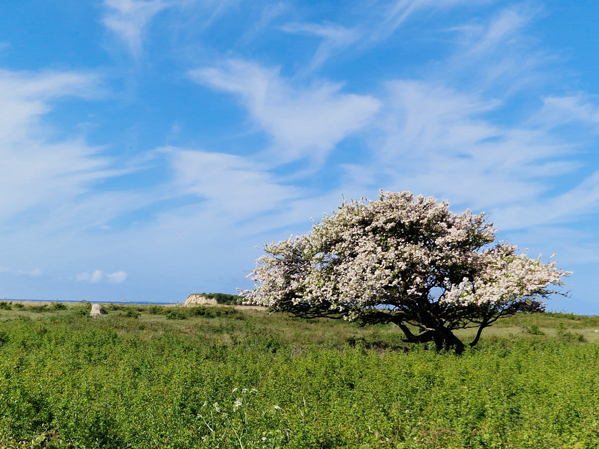 De stærkt forgrenede buske med tornede grene står nærmest som udråbstegn i det afvekslende landskab, hvor hvidtjørne har gode betingelser for at brede sig.