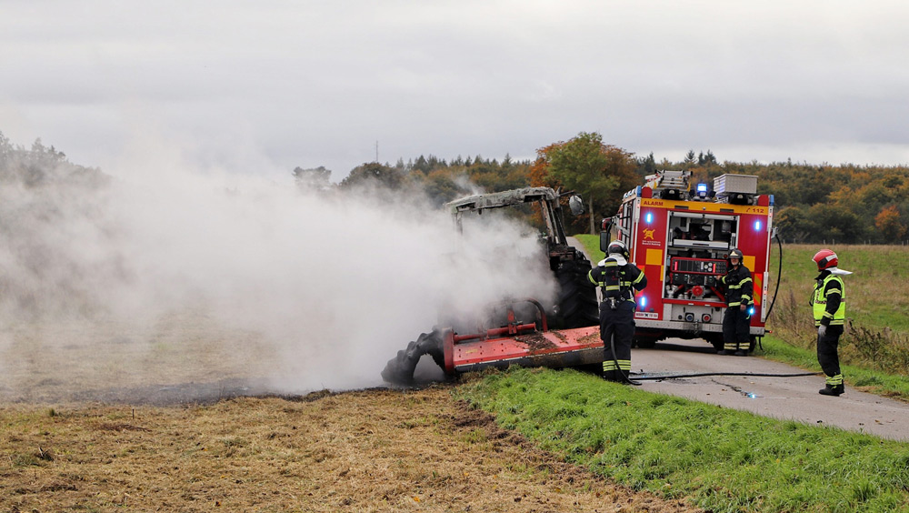 Den første melding lød på en naturbrand, men det viste sig hurtigt, at der var tale om en traktor, der stod i flammer.