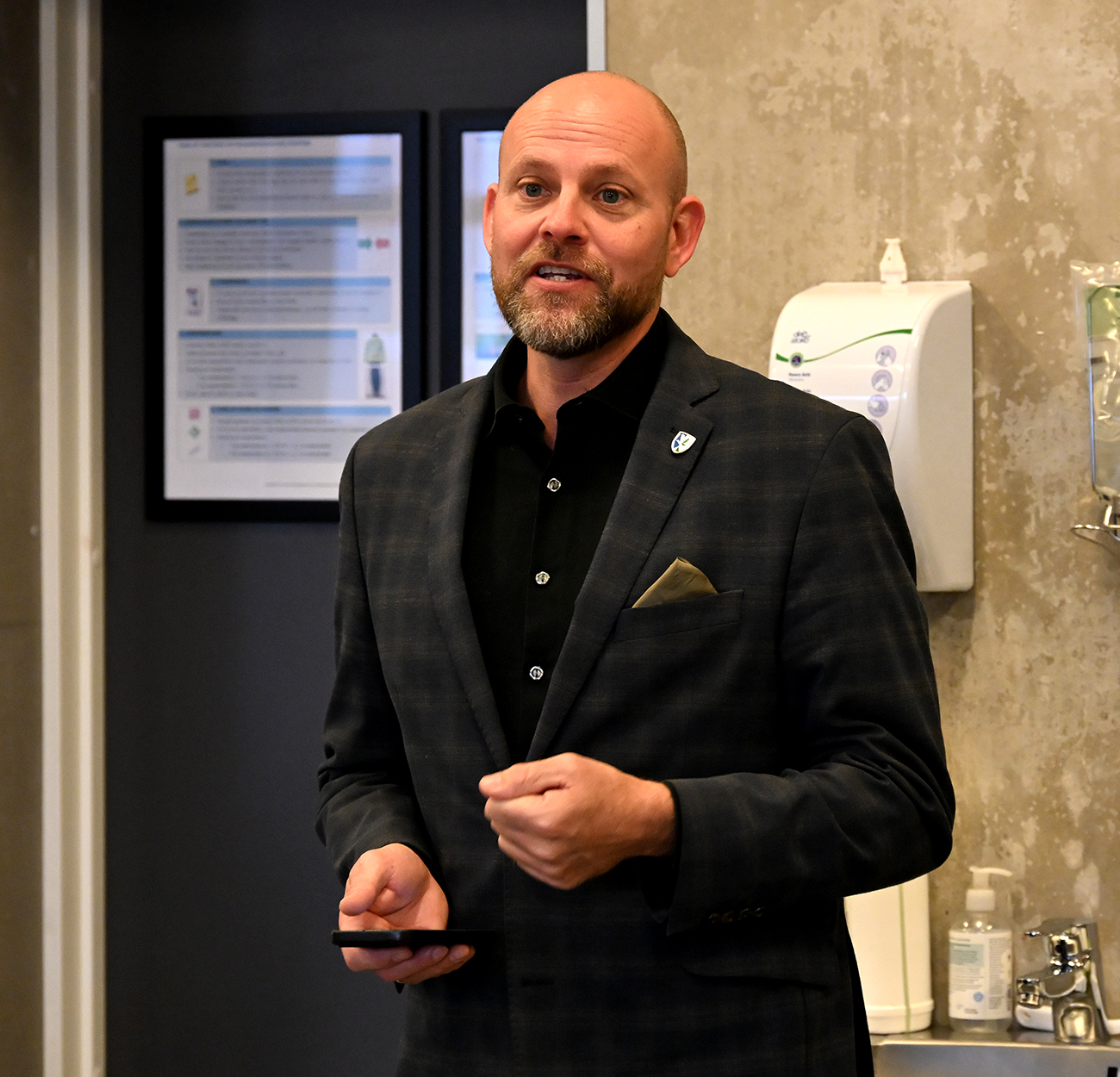 Stationsleder Morten Hemmingsen holdt en varm og personlig tale for hver enkelt af de tre brandmænd. Med både humor og gode anekdoter fra et langt arbejdsliv i uniform fik han sat ord på det kollegiale sammenhold og den særlige ånd, der præger hverdagen i Falck.