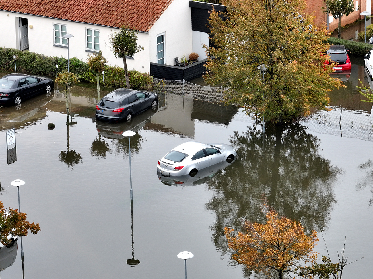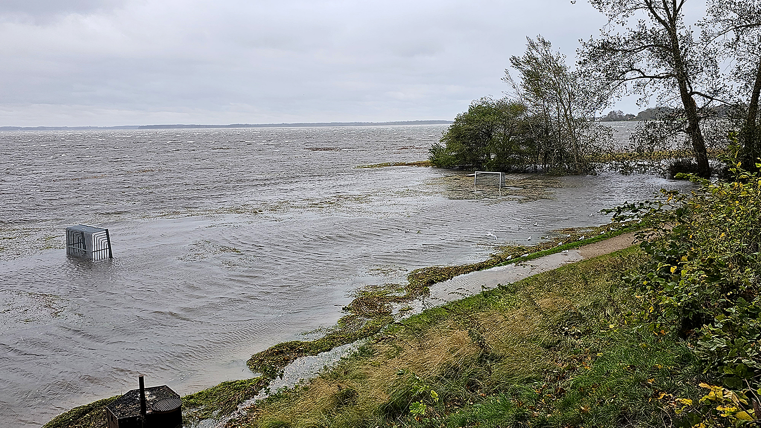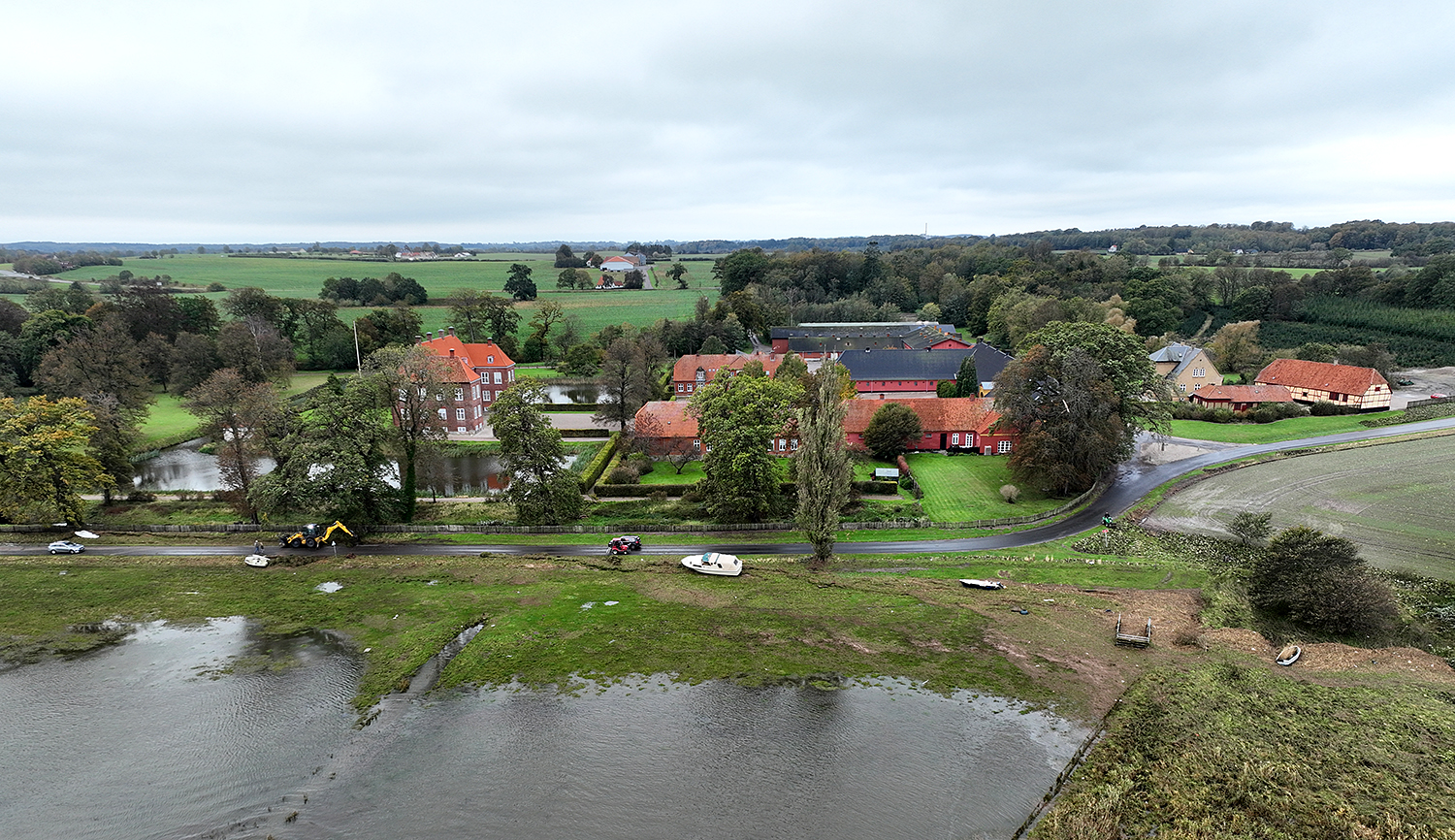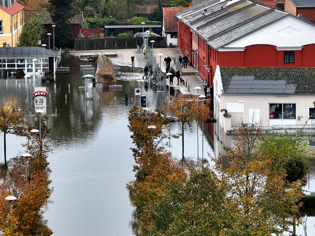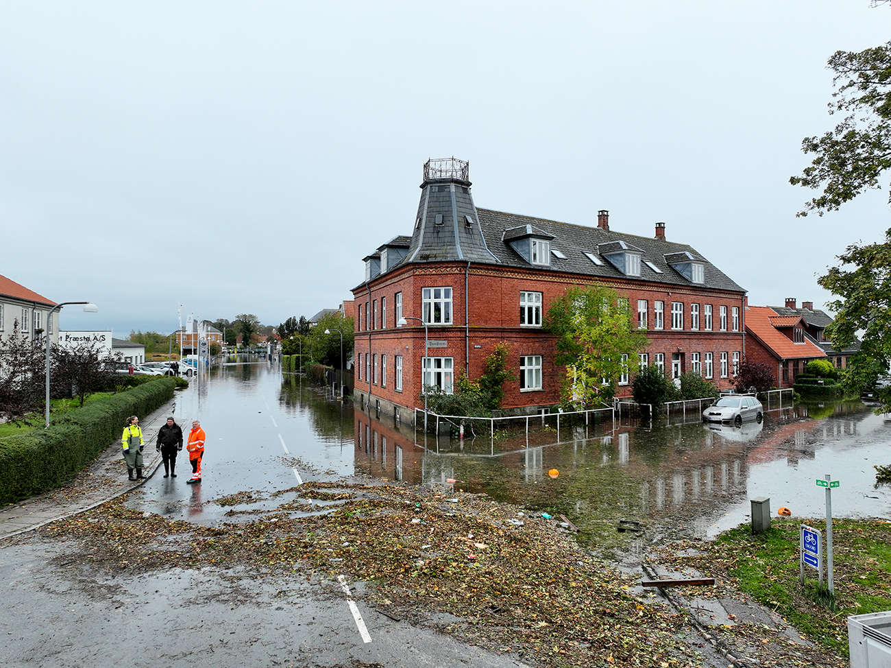 Dronen svævede over Præstø og fangede de oversvømmede gader, de opskyllede både på Nysøvej og torvet, der stod som et stille spejl over byens kamp for at komme sig.