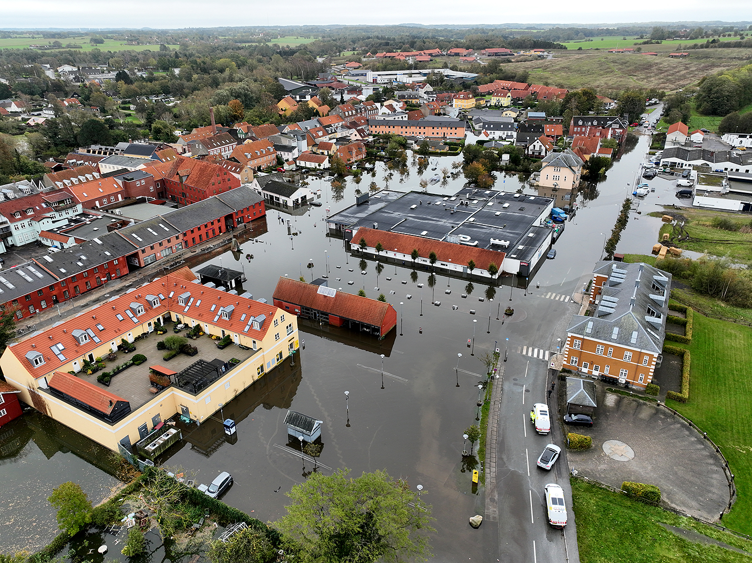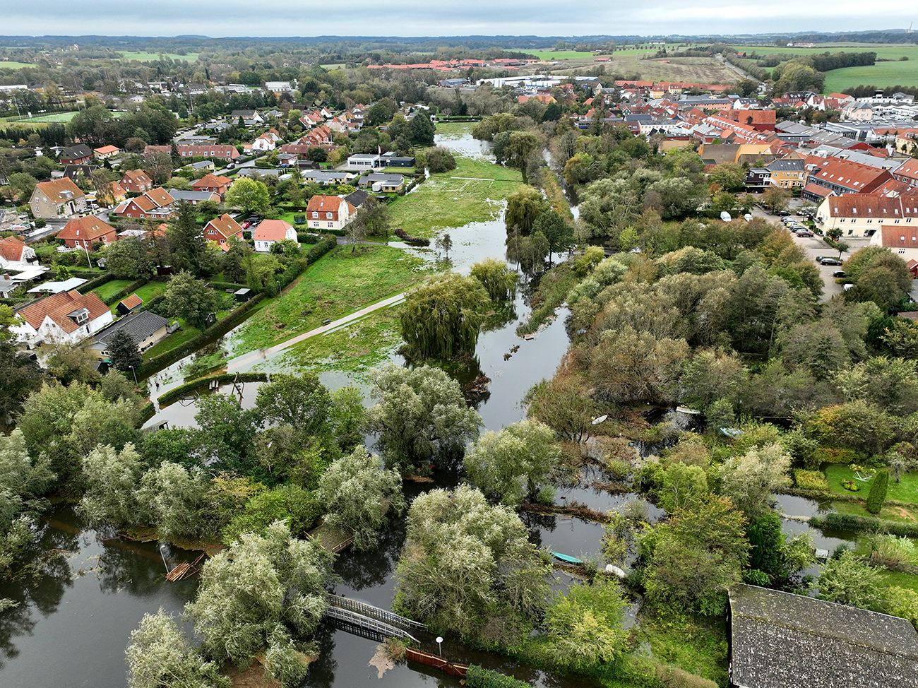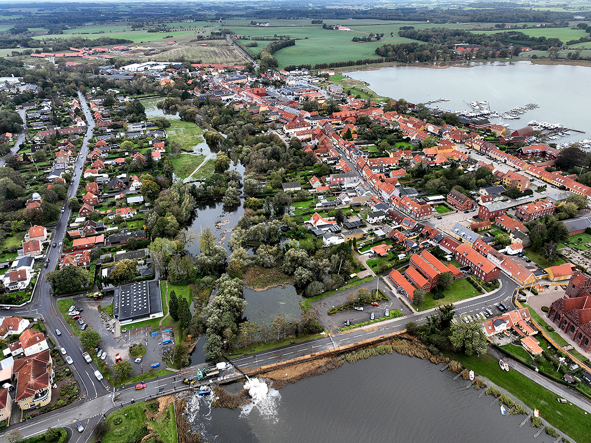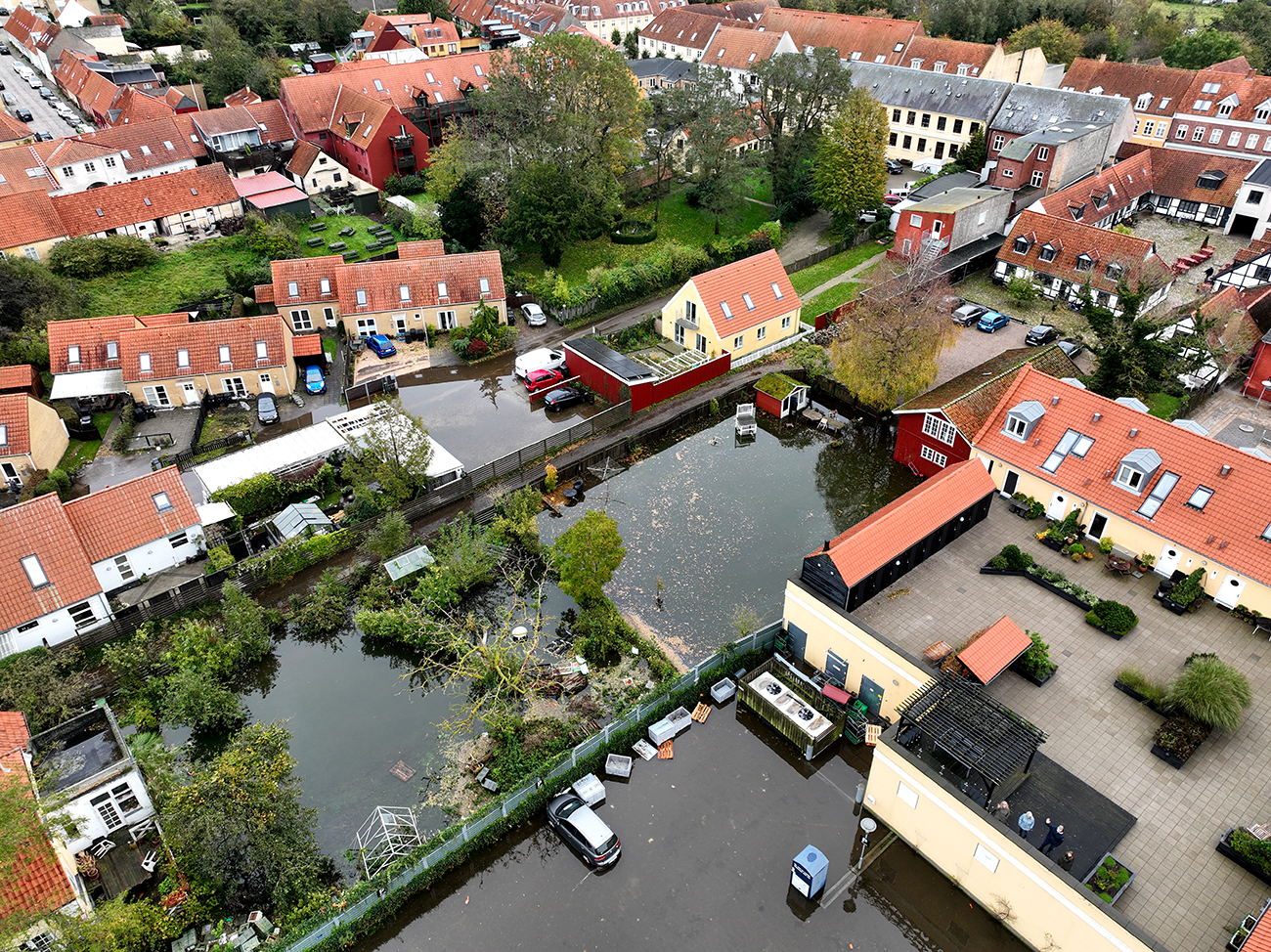 Se dronefilmen: “Præstø dagen derpå – en by, en oversvømmelse, en kamp for genopbygning.”