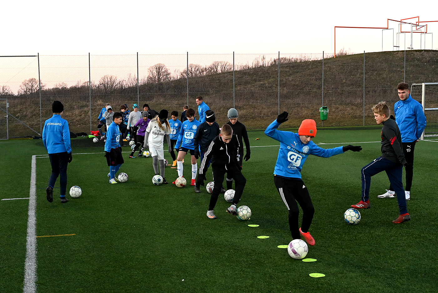 En helt ny dreng fra Nykøbing F. Lucas Bang Møller føler sig allerede velkommen hos medspillere samt trænere. Her viser Lucas hvordan man skal drible med en bold.