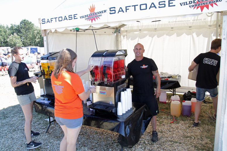 -Der ryger en del, mellem klokken 14 og 17 vil vi have brugt 60 liter koncentreret saft, vi serverer altså omkring 550 liter saftevand, fortæller Allan.