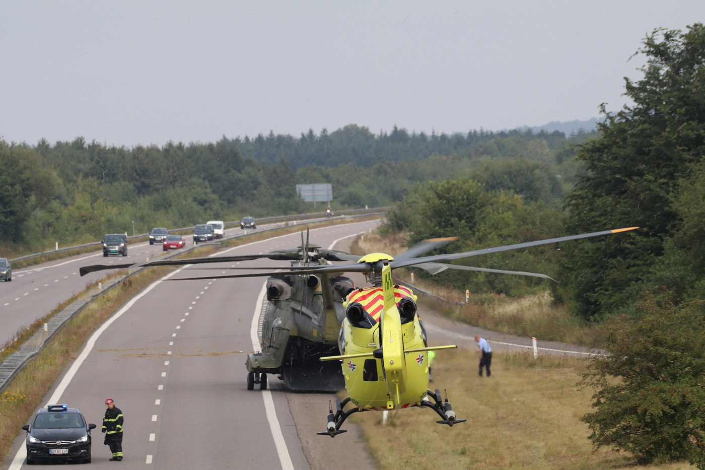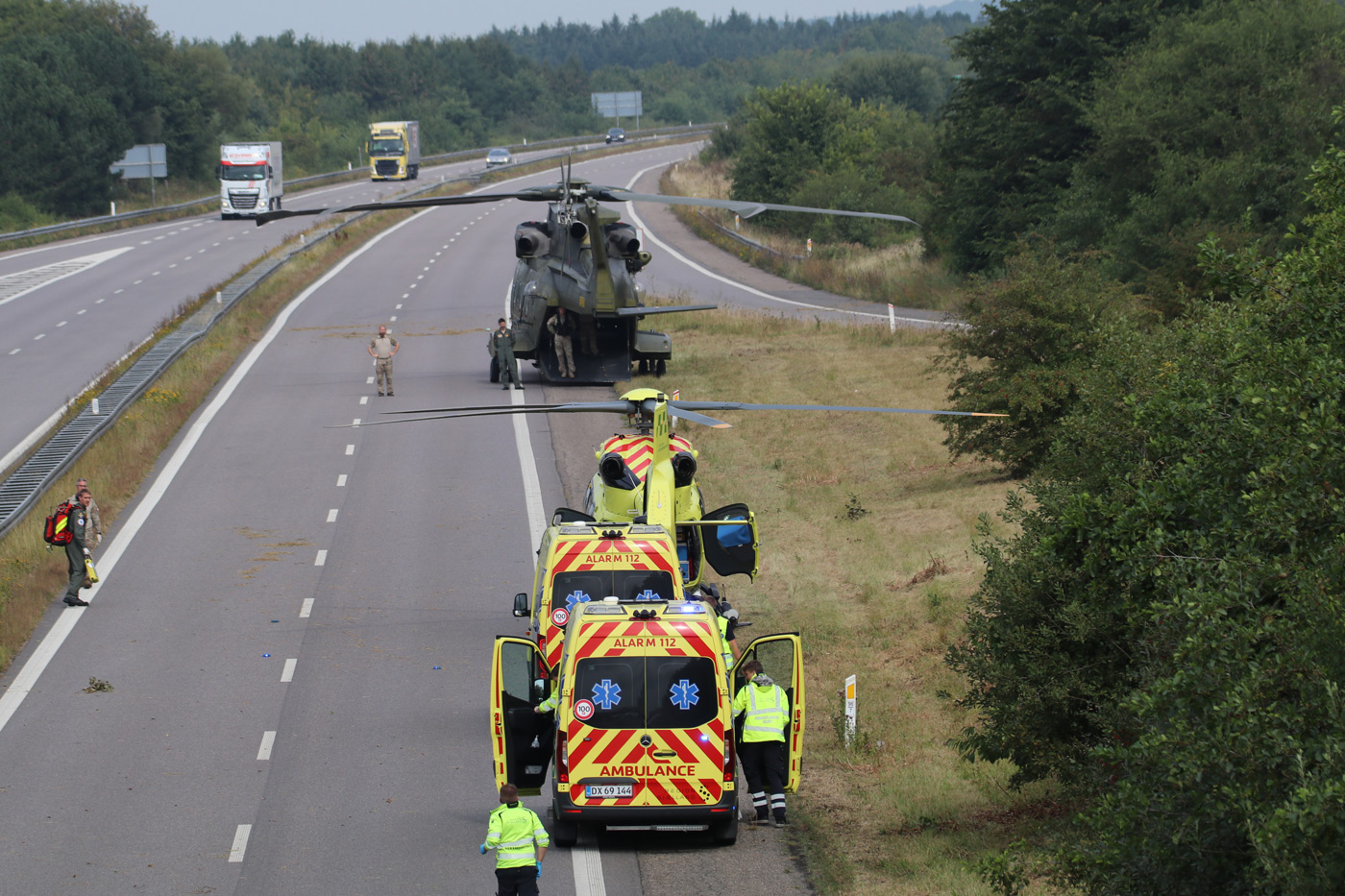 Der landede både en lægehelikopter og den store fra forsvaret.