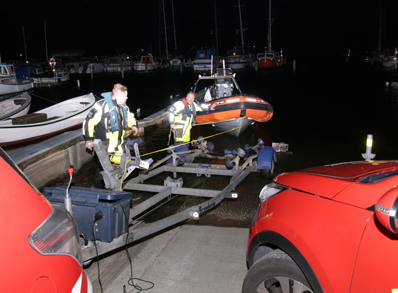 -Vi sætter en båd i vandet, vi fik at vide det var lige ud for enden af Færgegårdsvej, fortæller indsatsleder Knud Døssing.