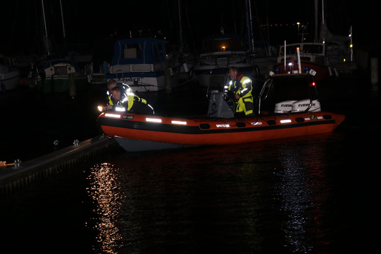 Vordingborg Sydhavn. Her er redningsmandskabet ved at trække båden ind igen. Foto Anders Munch / Vordingborg.in