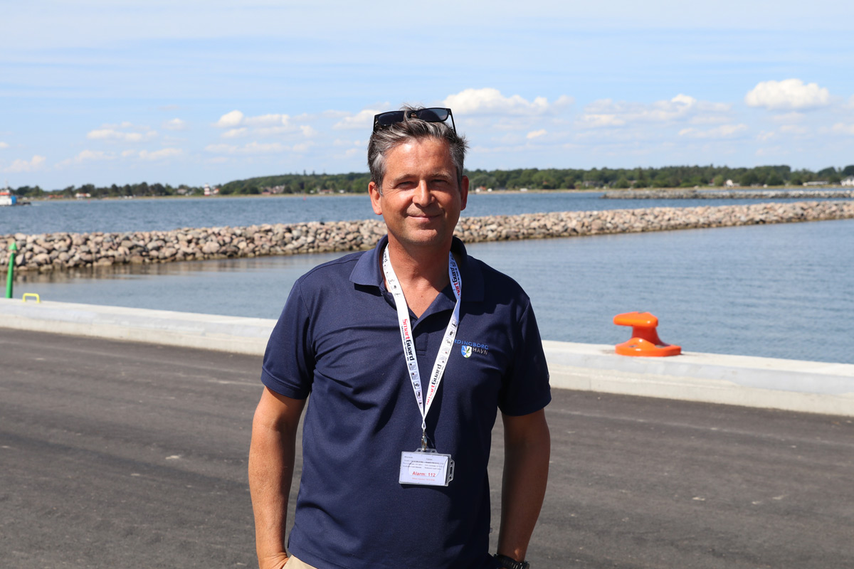 Projektchef fra M. J. Eriksen, Dennis Laursen: -Vi er mange folk på stedet, vi arbejder omkring 30-40 mand på havnen når vi er flest, i gennemsnit er vi 15 mand.